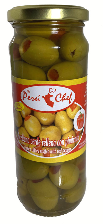 Verdes rellenas con Pimiento Peru Chef - Frasco de 11.8 Onzas